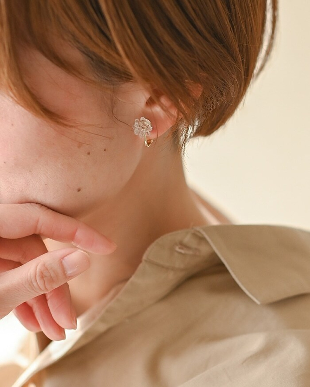 春の訪れを感じるような、ふわりとした可憐な輝きが、耳元を華やかにしてくれます。