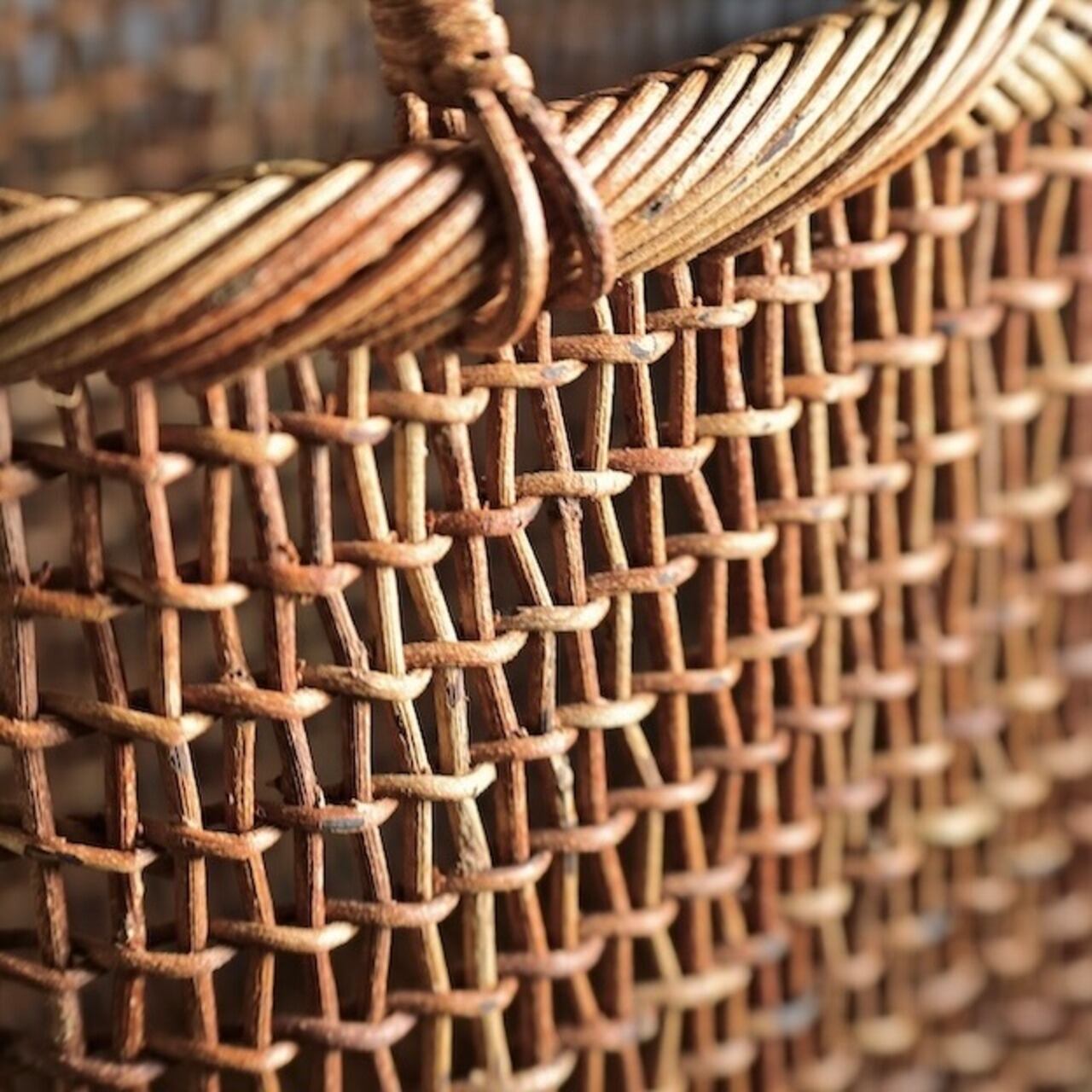 こちらは、おしゃれ着にもお買い物かごにもインテリアにも用途がたくさん思いつくかご。高さも低めで出し入れが簡単な機能性も今風でおしゃれ。筋の良いあけび蔓を選んで編み組む細目こだし編み。フリーハンドで編み組むので丸みのあるデザインが特徴。
