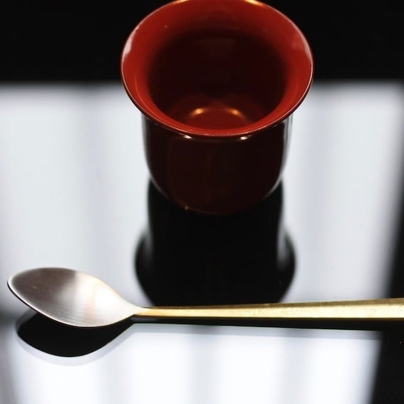 ▲真鍮鋳肌の素材感を生かしたカトラリーシリーズ。口に触れる部分は銀メッキを施してあります。口に触れる先端部分をヘアラインで研磨した後銀メッキで仕上げ。真鍮と銀のコントラストが美しく、手に取ったときの滑らかな鋳肌の手触りや手に収まる重厚感をお楽しみいただけます。